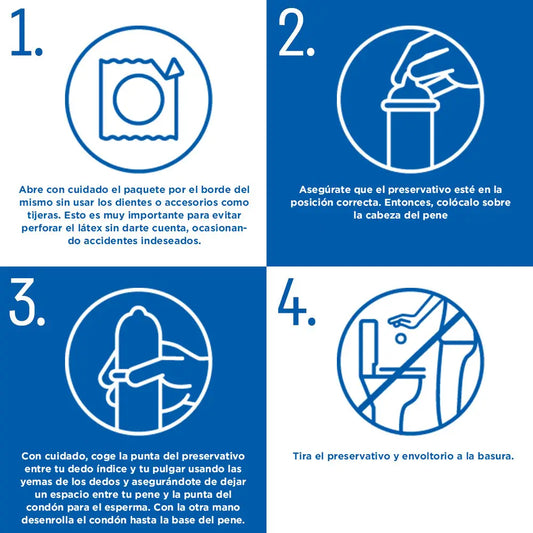 - Sin contacto genital antes de usarlo. De nuevo, otra medida que puede parecer evidente pero no siempre lo es. No debe haber ningún contacto entre genitales sin el preservativo puesto: debe usarse siempre sin importar si hay eyaculación o no.
