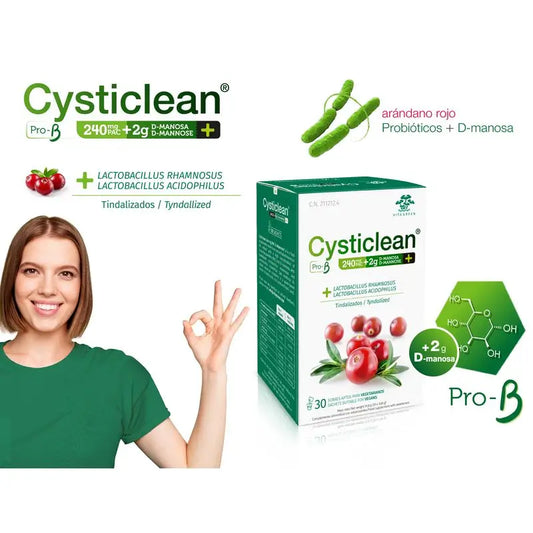 Cysticlean es un complemento alimenticio diseñado para ayudar a las personas a prevenir y tratar la cistitis. Las cápsulas Cysticlean contienen extracto de arándano americano, que es una fuente vegetal de ácido quínico, ácido cítrico y ácido málico. Esta composición natural permite inhibir la capacidad de adherencia de la bacteria causante de la cistitis. Además, es importante destacar que este producto no contiene gluten, lactosa ni azúcares añadidos.