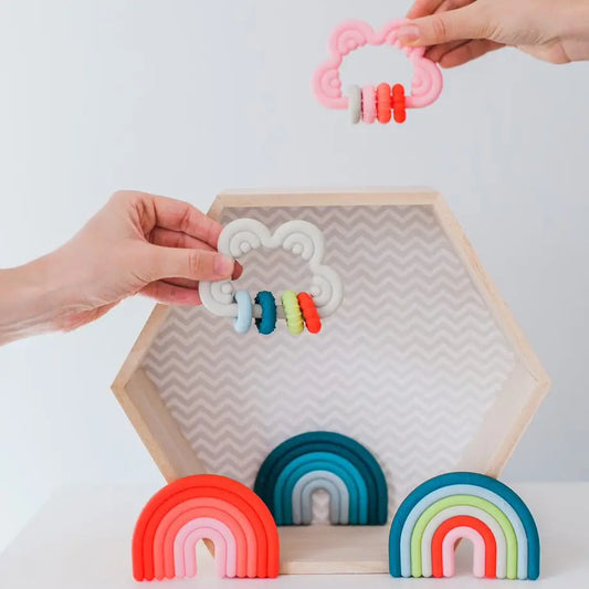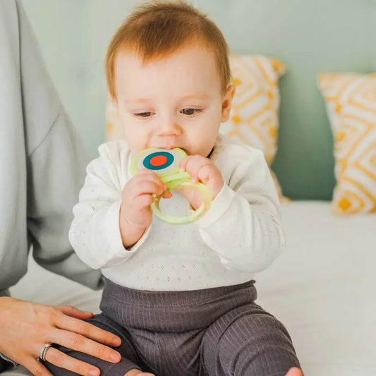 Los mordedores y sonajeros pueden usarse diariamente para que el bebé se mantenga estimulado y entretenido durante sus ratos de exploración.