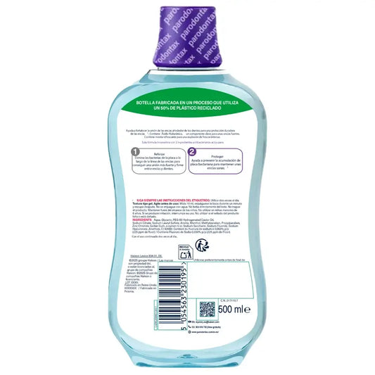 Parodontax Refuerza y Protege las Encías, Enjuague Bucal con Ácido Hialurónico, Funciona para fortalecer y proteger la unión entre encías y dientes, Menta Fresca, 500 ml