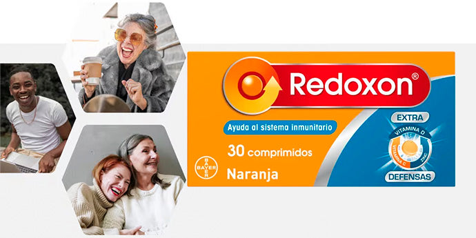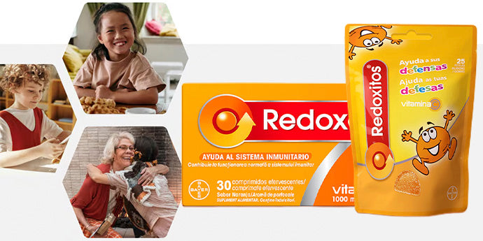 Redoxon es una gama de productos compuestos por vitamina C, vitamina D, Zinc y Equinácea, que ayudan a conseguir un aumento de las defensas y a proporcionar un refuerzo extra de manera cómoda y sencilla al sistema inmunológico. Redoxon pertenece a la multinacional de laboratorios Bayer.