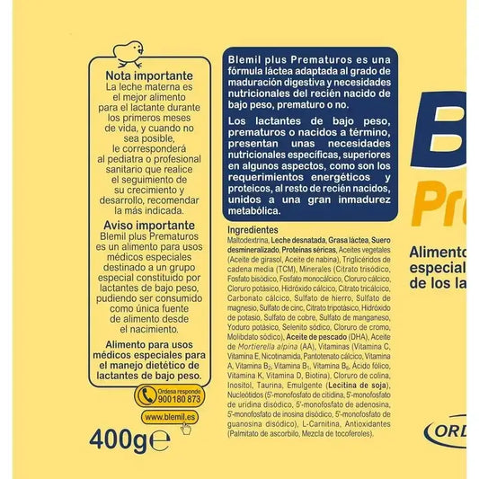 Almirón Advance Prematuros Tin 4 x 400gr es un producto que actúa como un suplemento nutricional para el desarrollo y crecimiento de los bebés prematuros. Viene en una presentación de 4 botes de 400gr cada uno. Modo de EmpleoPreparar el biberón con agua, añadiendo un cacito de producto por cada 30ml de agua.