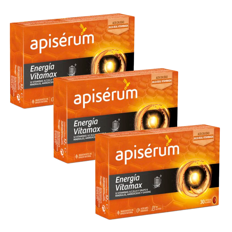 Apisérum Energía Vitamax es un complemento alimenticio desarrollado por APISérum como una opción viable y saludable para aportarle al organismo un extra de energía. Posee una fórmula libre de lactosa y azúcares añadidos.