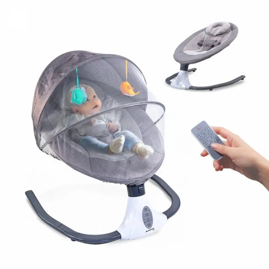 · De 0 meses a 3 años · De 0 meses a 9 kg en posición mecedora · Capota desenfundable con juguetes · Con música (10 melodías), balanceo (5 niveles) y temporizador para apagado automático · Muy ligero · Textil desenfundable y lavable · Reposacabezas y reductor · Arnés de seguridad de 5 puntos · Embalaje: caja de color · Conexión Bluetooth para reproducir música · Mando a distancia incluido · Capota con mosquitera incluida · Pilas o enchufe