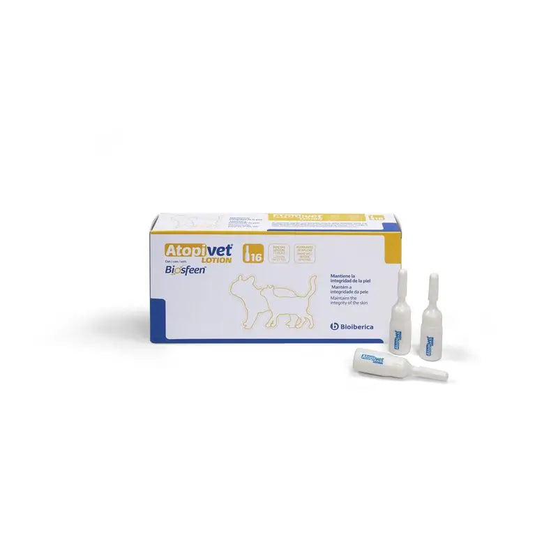 La loción Atopivet Spot-On fabricada por Bioiberica es un producto de aplicación tópica, ideado para favorecer la salud de la piel de las mascotas, concretamente de los perros y gatos de cualquier raza y peso. Emplea una fórmula rica en nutrientes que favorecerán la hidratación, suavidad, flexibilidad y firmeza de la piel del animal.