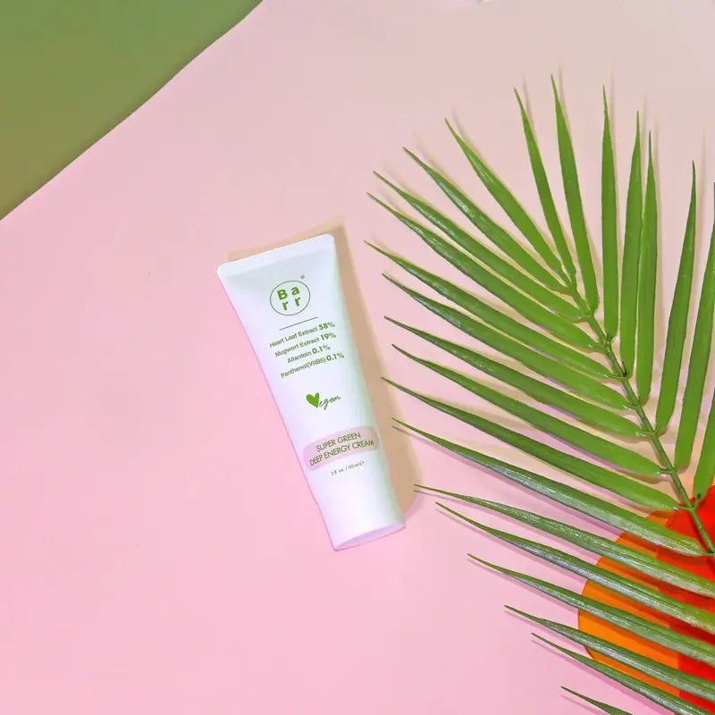 Una crema facial vegana hidratante, enriquecida con un 58% de extracto de Houttuynia Cordata (Heartleaft) y un 19% de Artemisa (Mugwort), para calmar la inflamación de la piel. Contiene un 0,1% de pantenol (también conocido como vitamina B5), que evita la pérdida de hidratación, y un 0,1% de alantoína, que aporta beneficios antiedad y regeneradores. La crema Super Green Deep Energy es apta para mujeres embarazadas y para el periodo de lactancia. Tiene una textura de gel refrescante que se adapta bien a los climas cálidos y a las pieles grasas y sensibles.Composición58% Houttuynia Cordata Heartleaf Extract, 19% Artemisia Capillaris Mugwort Extract, 0.1% Panthenol Vitamin B5, 0.1% Allantoin.Modo de empleoCon el rostro limpio, extiende la cantidad de crema suficiente para hidratar el rostro, cuello y escote. Masajea el producto con movimientos ascendentes hasta que se absorba.Para quién está indicadoHouttuynia Cordata Extract, Artemisia Capillaris Extract, Cetyl Ethylhexanoate, Butylene Glycol, 1,2-Hexanediol, Glycerin, Water, Ammonium Acryloyldimethyltaurate/VP Copolymer, Arginine, Carbomer, Sodium Acrylate/Sodium Acryloyldimethyl Taurate Copolymer, Polyisobutene, Allantoin, Panthenol, Xanthan Gum, Ethylhexylglycerin, Caprylyl Glycol, Disodium EDTA, Melia Azadirachta Leaf Extract, Melia Azadirachta Flower Extract, Camellia Sinensis Leaf Extract, Caprylyl/Capryl Glucoside, Sorbitan Oleate, Coccinia Indica Fruit Extract, Sodium Hyaluronate, Amber Power, Dextrin, Solanum Melongena (Eggplant) Fruit Extract, Theobroma Cacao (Cocoa) Extract, Curcuma Longa (Turmeric) Root Extract, Ocimum Sanctum Leaf Extract, Corallina Officinalis Extract, Moringa Oleifera Seed Oil.