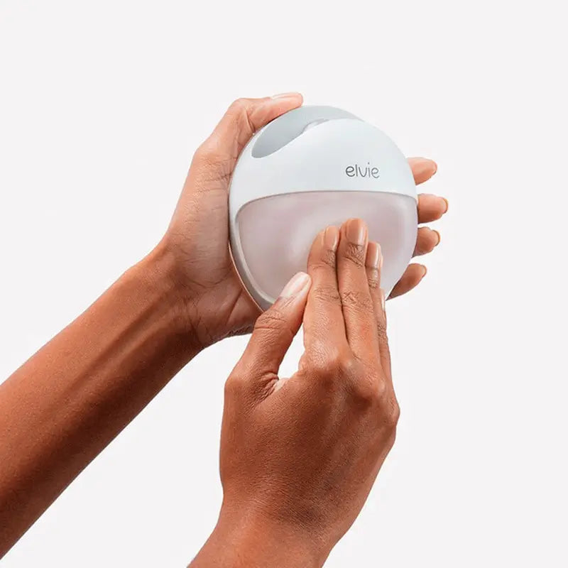 Sin ninguna pieza complicada, Elvie Curve es fácil de usar: presiona simplemente el depósito de silicona para crear una succión natural y extraer hasta 120 ml de leche cada vez.