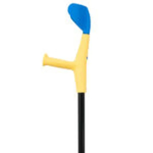 Bastón inglés infantil azul con tubo negro, ideal para mejorar la marcha y aumentar la estabilidad.