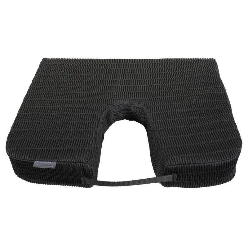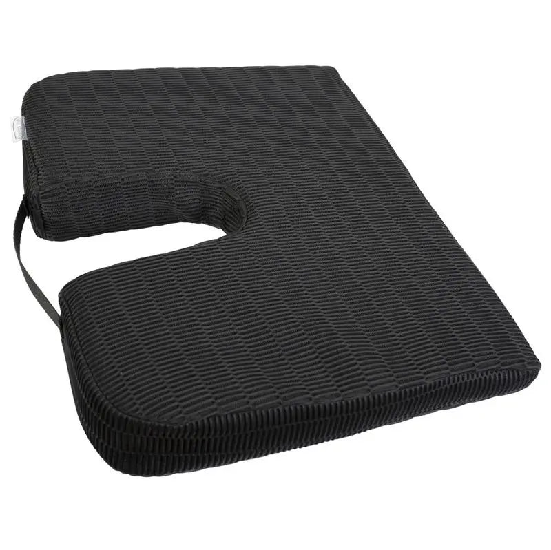 El diseño de este cojín coxis en forma de cuña y su corte en forma de “U” en su parte más alta, evita la continua presión y roce en el hueso coxis, mientras se permanece sentado encontrando un gran alivio. Se adapta con facilidad a las sillas de ruedas. Es óptimo para conseguir un reparto homogéneo de las presiones y ayudar a mantener la postura absorbiendo los impactos, regulan la temperatura e impiden la sudoración excesiva.