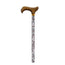 Muletilla extensible fabricada en aluminio. El tubo tiene un estampado de cachemir en tonos claros. La empuñadura es de madera.