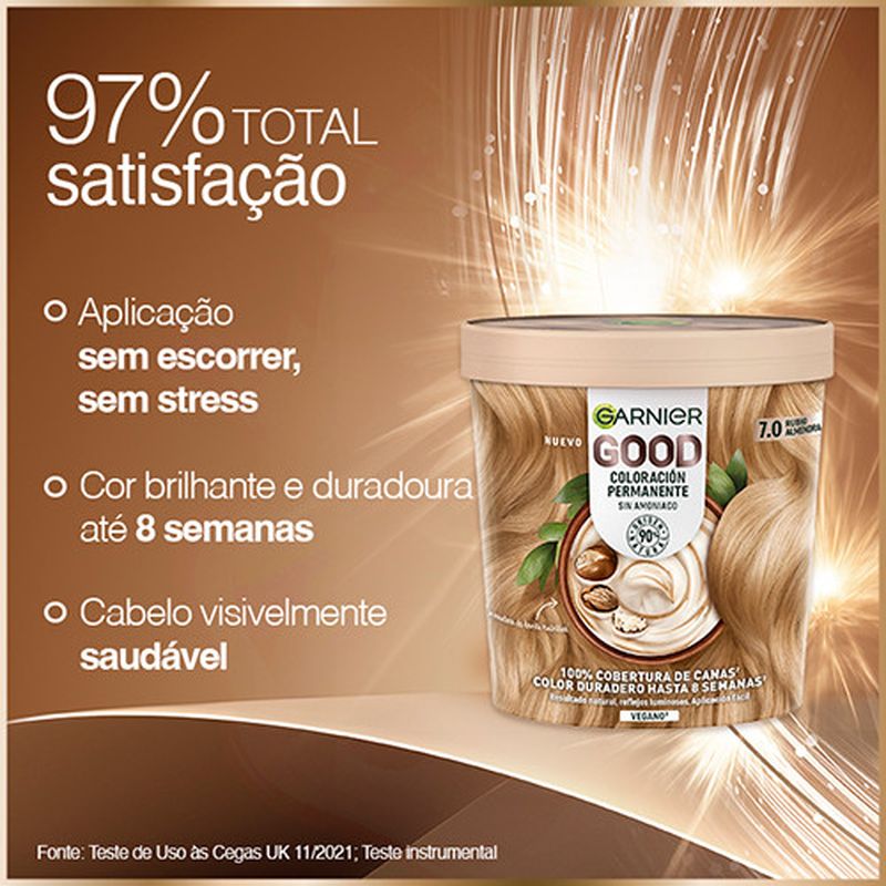 https://www.farmaciasdirect.es/products/garnier-good-coloracion-permanente-sin-amoniaco-90-origen-natural-tono-70-rubio-almendraGA3600542518895Garnier Good Coloración Permanente Sin Amoniaco, 90% Origen Natural Tono 7.0 Rubio Almendra.GARNIER GOOD Coloración Permanente Sin Amoniaco, 90% Origen Natural, Fórmula Vegana Tono 7.0 Rubio Almendra.Ingredientes1152439 - INGREDIENTS: AQUA / WATER • HYDROGEN PEROXIDE • CETEARYL ALCOHOL • SODIUM SALICYLATE • TRIDECETH-2 CARBOXAMIDE MEA • PHOSPHORIC ACID • CETEARETH-25 • TETRASODIUM ETIDRONATE • TETRASODIUM PYROPHOSPHATE • GLYCERIN (F.I.L. C202318/1).Características- 100% cobertura de canas.- Color natural y brillante, hasta 8 semanas.- Resultado natural, reflejos luminosos.- Pelo visiblemente sano.- x2 veces más brillo, x2 veces más nutrición para el cabello.https://www.farmaciasdirect.es/cdn/shop/files/GA3600542518895_8xJycgOfso.jpg?crop=center&height=300&v=1725069260&width=300https://www.farmaciasdirect.es/cdn/shop/files/GA3600542518895_8xJycgOfso.jpg?crop=center&height=100&v=1725069260&width=1008.411.43.026.32