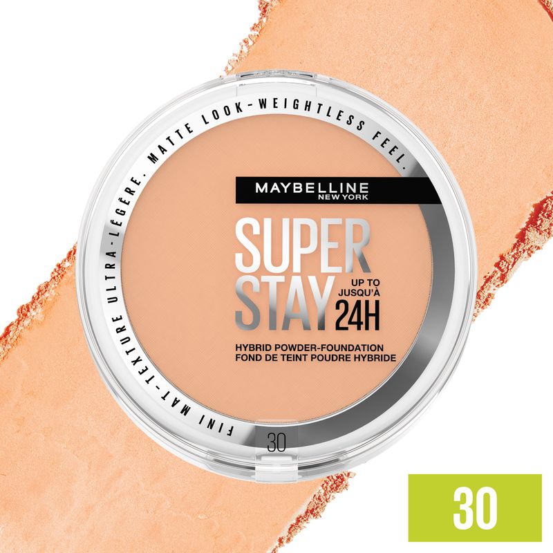 https://www.farmaciasdirect.es/products/maybelline-new-york-superstay-hibrido-24h-base-de-maquillaje-en-polvo-tono-030MA3600531666651Maybelline New York Superstay Híbrido 24H Base De Maquillaje En Polvo Tono 030Consigue un aspecto mate suave con la Base de Maquillaje en Polvo: SuperStay Híbrido. Hasta 24 horas de súper cobertura mate y textura súper ligera. Comodidad ininterrumpida, sensación de ligereza. Resiste el sudor, el agua y no transfiere. No reseca, ni cuartea, ni deja manchas.¡Es una pasada de polvo!IngredientesG2056838 1 - INGREDIENTS: TALC • ZINC STEARATE • DIMETHICONE • SILICA • ZEA MAYS STARCH / CORN STARCH • CAPRYLIC/CAPRIC TRIGLYCERIDE • DIMETHICONE/VINYL DIMETHICONE CROSSPOLYMER • CAPRYLYL GLYCOL • TRIETHOXYCAPRYLYLSILANE • ETHYLHEXYLGLYCERIN • POTASSIUM SORBATE • SILICA [NANO] / SILICA • ISOCETETH-10 • ALARIA ESCULENTA EXTRACT • TOCOPHEROL ● [+/- MAY CONTAIN: CI 77891 / TITANIUM DIOXIDE • CI 77491, CI 77492, CI 77499 / IRON OXIDES • CI 19140 / YELLOW 5 LAKE • MICA • CI 15850 / RED 7 LAKE • CI 77742 / MANGANESE VIOLET • CI 77007 / ULTRAMARINES • CI 15850 / RED 6]. (F.I.L. Z70017546/2).CaracterísticasAcabado mate suave y sensación súper ligera hasta 24H.https://www.farmaciasdirect.es/cdn/shop/files/MA3600531666651_bVpJs0Kywo.jpg?crop=center&height=300&v=1725069204&width=300https://www.farmaciasdirect.es/cdn/shop/files/MA3600531666651_bVpJs0Kywo.jpg?crop=center&height=100&v=1725069204&width=10013.2916.93.6121.36