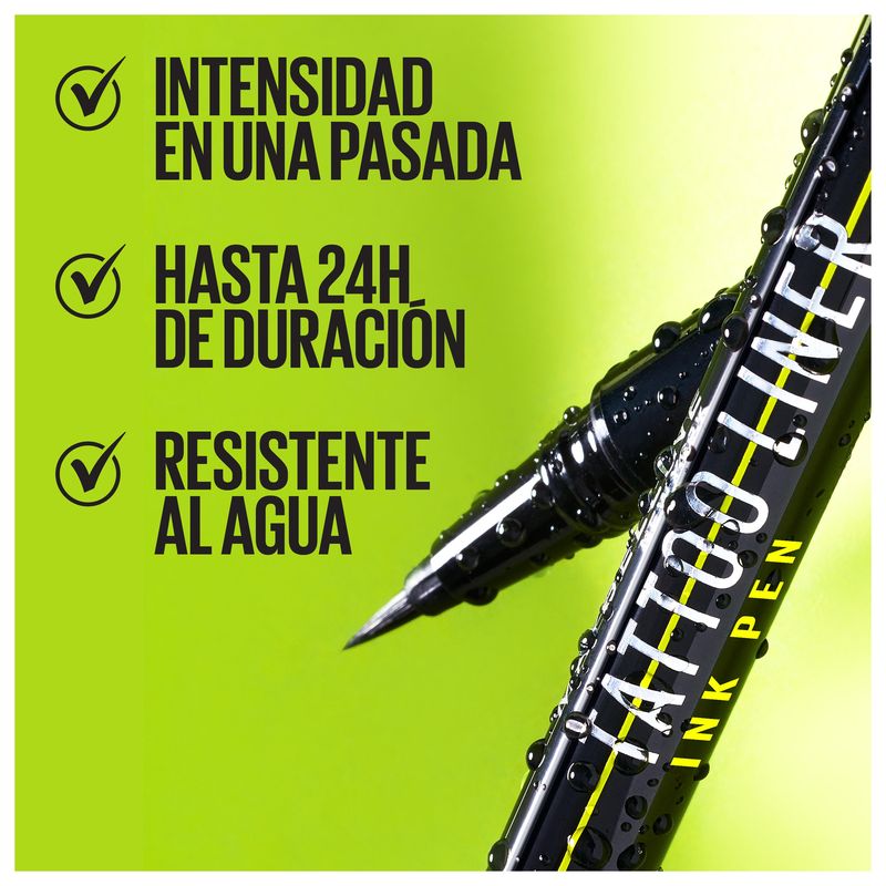 - Eyeliner ultra-pigmentado. - Fórmula efecto Tattoo: Con pigmentos ultra negros para una intensidad tattoo. - Resiste agua, roces y no se cuartea: Nuestra fórmula de larga duración se mantiene hasta 24H. - Aplicador ultra preciso: permite conseguir un delineado perfecto en una sola pasada.