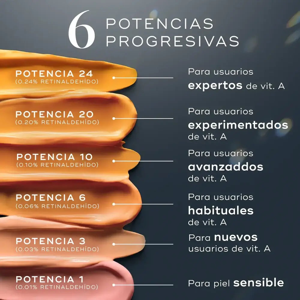 Si eres nuevo en el uso de Crystal Retinal, es importante que lo introduzcas de manera gradual. Comienza usándolo dos veces a la semana durante las primeras 2 semanas, luego aumenta a una vez cada dos noches durante las siguientes 2 semanas, y después puedes usarlo todas las noches. Recuerda aplicar siempre protector solar al día siguiente de usar vitamina A.