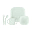 Divertida vajilla infantil cuadrada de color mint para las primeras comidas de tu bebé. Está hecha en España y tematizada con un dulce animal de color mint. Compuesta por cubiertos flexibles y un vaso adaptado para el BLW. Sus cubiertos anatómicos están pensados para poder ser usados por niños pequeños o con diversidad funcional, por sus mangos gruesos y superficie antideslizante , especialmente diseñados para que su agarre sea sencillo.