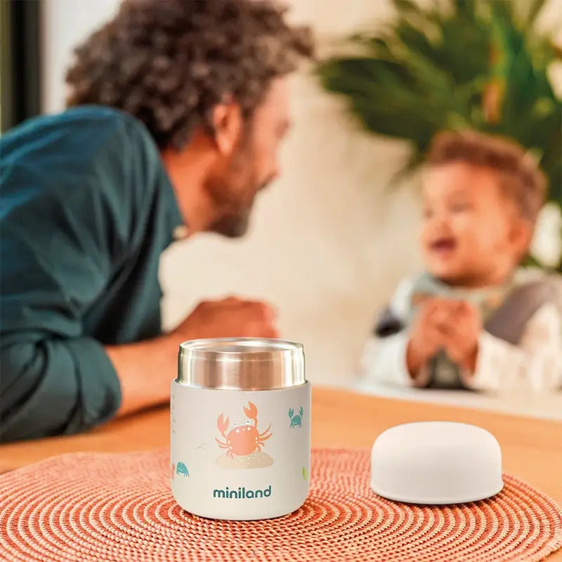 Los termos para alimentos sólidos y papillas de 280 ml de Miniland son el aliado perfecto para mantener las comidas de tu bebé a la temperatura ideal, ya sea en casa o fuera de ella. Con una doble pared de acero y una exclusiva capa de cobre, ofrecen una excelente conservación térmica, manteniendo los alimentos calientes o fríos durante más tiempo.Fabricados en acero 304 de alta calidad, estos termos son altamente resistentes a las altas temperaturas, lo que los hace ideales para el uso diario. Su diseño práctico y funcional permite alimentar a tu bebé directamente desde el recipiente, eliminando la necesidad de utilizar platos adicionales y simplificando las comidas.Compactos y fáciles de transportar, estos termos son perfectos para llevar en cualquier bolso o mochila. Son 100% libres de BPA, asegurando la seguridad alimentaria, y de limpieza sencilla, lo que facilita su mantenimiento tras cada uso. Con estos termos, las comidas de tu bebé serán prácticas, seguras y cómodas en cualquier lugar.