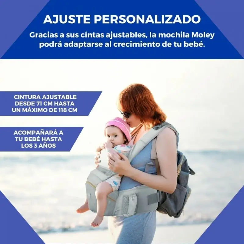 Conoce la mochila portabebés Moley, una solución ingeniosa que combina flexibilidad, comodidad y calidad para ofrecerte una experiencia incomparable al llevar a tu bebé contigo. Su diseño permite plegar fácilmente la parte superior de la mochila, proporcionando una mejor ventilación al bebé sin necesidad de quitarla por completo, lo que se ajusta a las preferencias climáticas y la comodidad del pequeño. Edad recomendada: 0-36 meses
