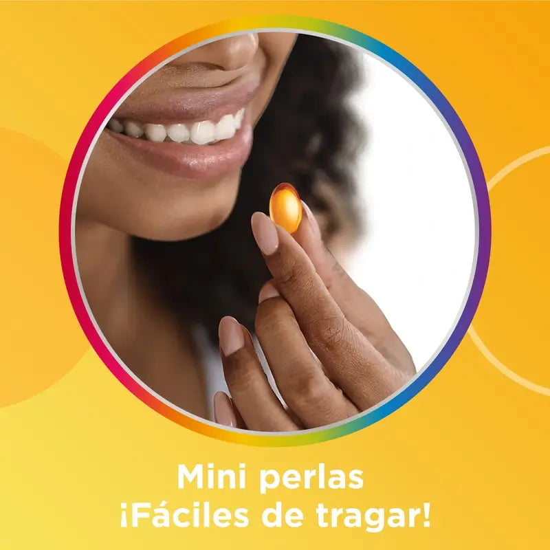 La formulación de Multicentrum Corazón, Mente & Visión Boost Omega 3 contiene Omega 3 en formato mini perlas fáciles de tragar. Los ácidos EPA y DHA contribuyen al funcionamiento normal del corazón. El DHA contribuye al mantenimiento de la visión en condiciones normales y al funcionamiento normal del cerebro. El efecto beneficioso se obtiene con una ingesta diaria de 250 mg de EPA y DHA para la función cardiaca y de 250 mg de DHA para la función cerebral y la visión. Envase de 120 mini perlas. Sin gluten y sin azúcar.