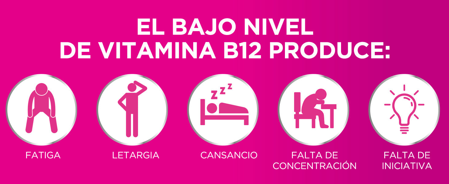 Vitamina B12: que ayuda a disminuir el cansancio y la fatiga , así como el metabolismo energético normal.