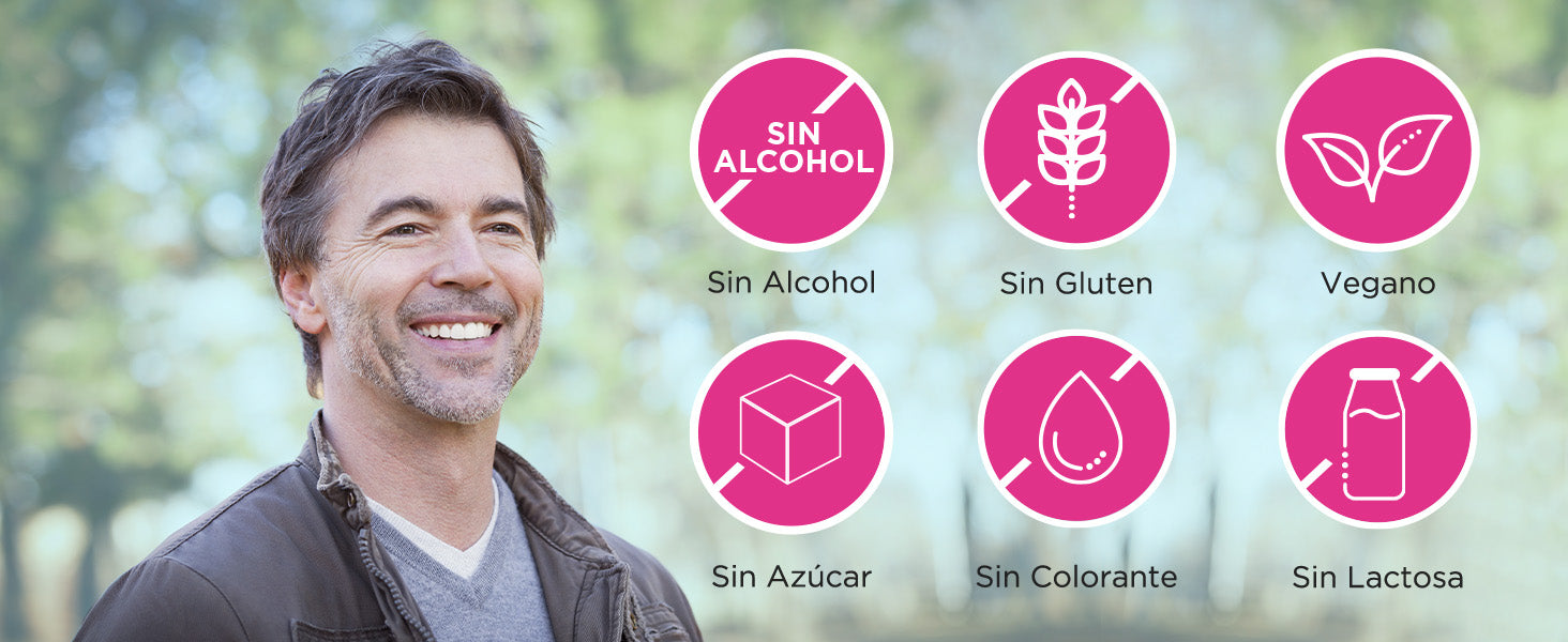Sin gluten, azúcar, ni colorantes. Es vegano, no contiene alcohol y es naturalmente sin lactosa.