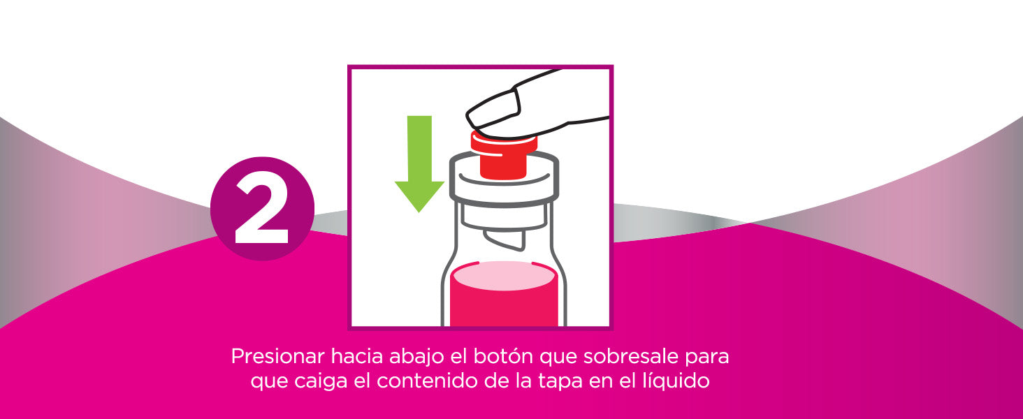 2. Presione hacia abajo el botón que sobresale para que caiga el contenido de la tapa en el líquido.