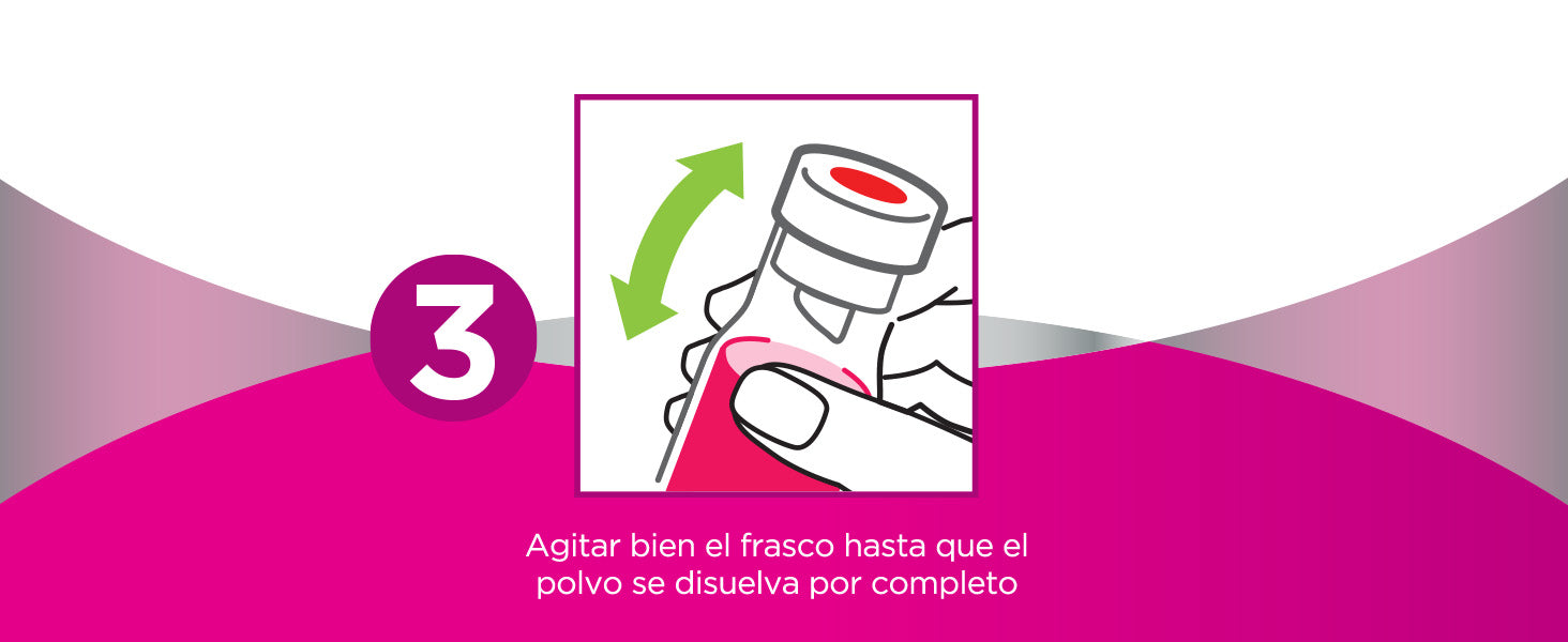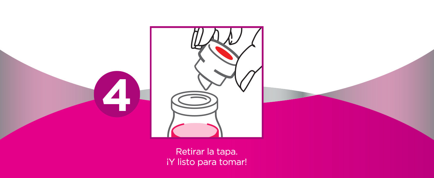 3. Agitar bien el frasco hasta que el polvo se disuelva por completo, luego retire la tapa. El producto debe tomarse inmediatamente después de la preparación.
