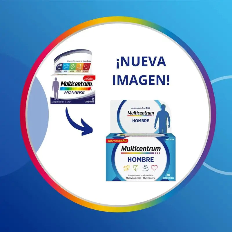 Multivitamínico especialmente formulado para Hombres. Con cantidades reforzadas de vitaminas y minerales que ayudan a satisfacer las necesidades nutricionales específicas del hombre.