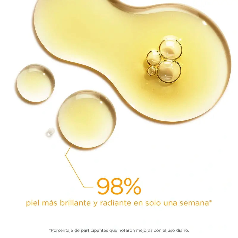 Fórmula iluminadora avanzada de sérum con Vitamina C (ácido L-ascórbico estabilizado) al 15%, mejora el tono y la luminosidad proporcionando una piel más radiante y uniforme. Exfoliación suave con un 2% de PHA este sérum antimanchas, elimina suavemente las células superficiales mejorando la textura y ayudando a que la Vitamina C penetre mejor.