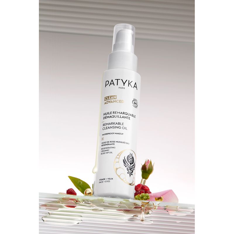 https://www.farmaciasdirect.es/products/patyka-aceite-extraordinario-desmaquillante-100-mlPA3700591900709Patyka Aceite Extraordinario Desmaquillante, 100 mlPrimer paso de la doble limpieza, este aceite desmaquillante combina el poder alisante y regenerador del Aceite de Rosa Mosqueta bio con el Extracto de Granada, antioxidante y calmante, para eliminar todo tipo de maquillaje y prevenir el envejecimiento prematuro. ComposiciónHELIANTHUS ANNUUS SUNFLOWER SEED OIL*, SESAMUM INDICUM SESAME SEED OIL*, POLYGLYCERYL4 OLEATE, RICINUS COMMUNIS CASTOR SEED OIL*, APRICOT KERNEL OIL POLYGLYCERYL-6 ESTERS, PARFUM (FRAGRANCE), ROSA CANINA FRUIT OIL*, PUNICA GRANATUM PERICARP EXTRACT*, GLYCERIN**, TOCOPHEROL. [04-001-1.22]Modo de empleoCada noche, calentar ligeramente el aceite en la palma de la mano y aplicarlo con movimientos circulares sobre la piel seca. Aclarar con agua tibia o aplicar directamente encima la Espuma Limpiadora Perfeccionadora.https://www.farmaciasdirect.es/cdn/shop/files/3700591900709_1.jpg?crop=center&height=300&v=1725069311&width=300https://www.farmaciasdirect.es/cdn/shop/files/3700591900709_1.jpg?crop=center&height=100&v=1725069311&width=10021.331.910.633.23
