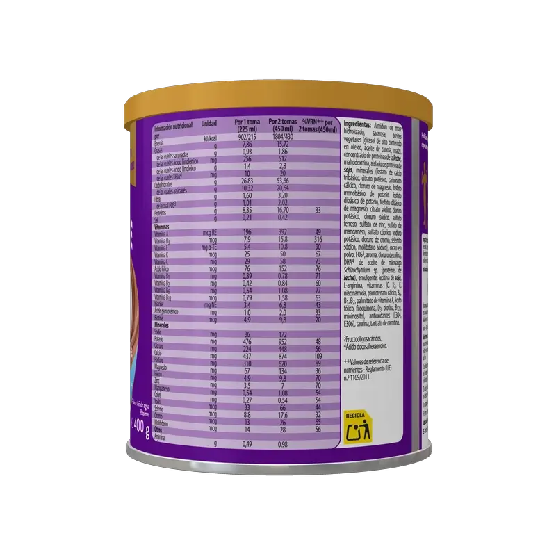 Complementa su nutrición para ayudar a su crecimiento y desarrollo . Contiene hierro para apoyar la atención y memoria , además de otras vitaminas, como la vitamina D para ayudar al sistema inmunitario, y minerales, como el magnesio para ayudar a afrontar el día a día con energía ayudando a reducir la fatiga.