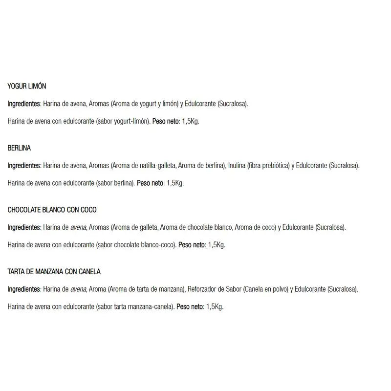 Avena, donuts, berlina, azúcar, harina de trigo, extracto de malta, etc. Ingredientes (berlina).
