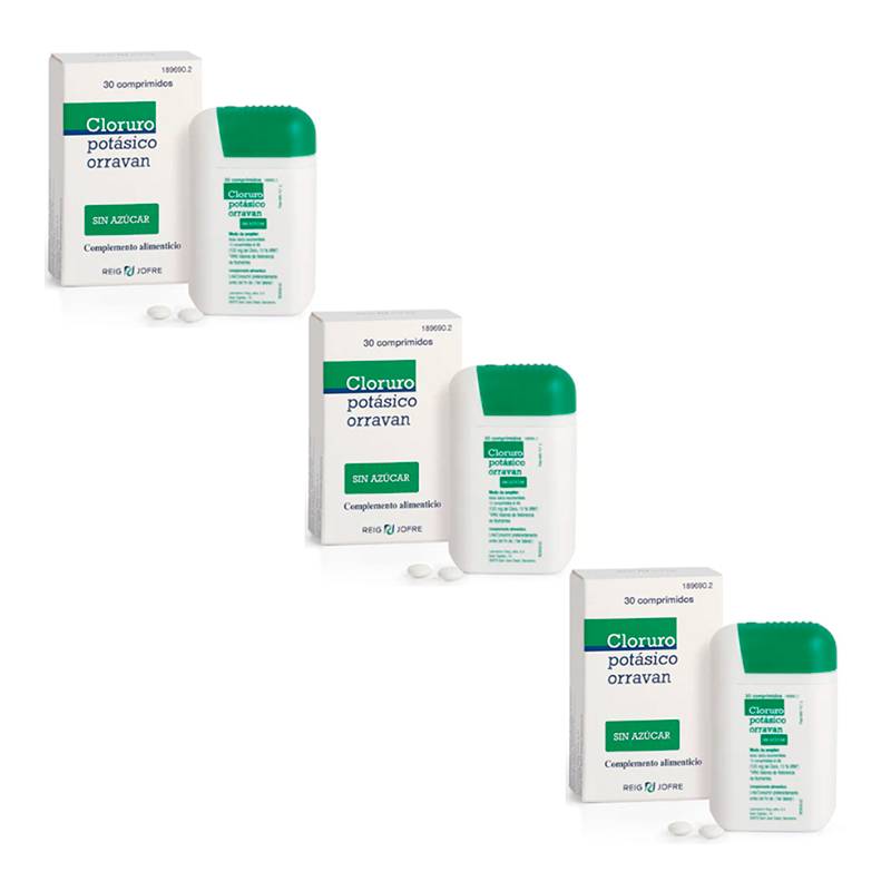 Reig Jofré Cloruro Potásico Orrovan, 30 comprimidos. Complemento alimenticio rico en cloruro de sodio, que estimula la secreción salival e inhibe la sequedad bucal.