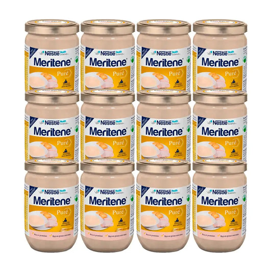 Puré con alto valor nutricional para adultos con dificultades de masticación y/o deglución. Sabor pavo de arroz con zanahoria.