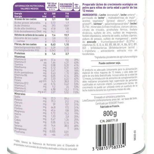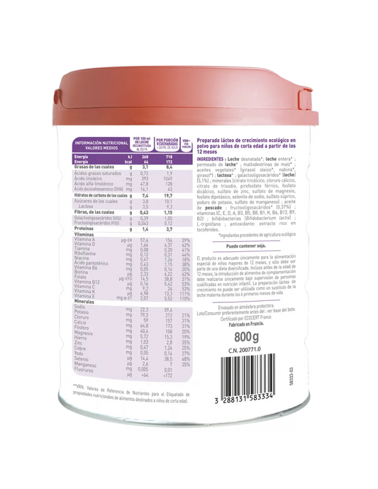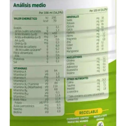 tricálcico), aceite de pescado (fuente de DHA) (leche, soja),