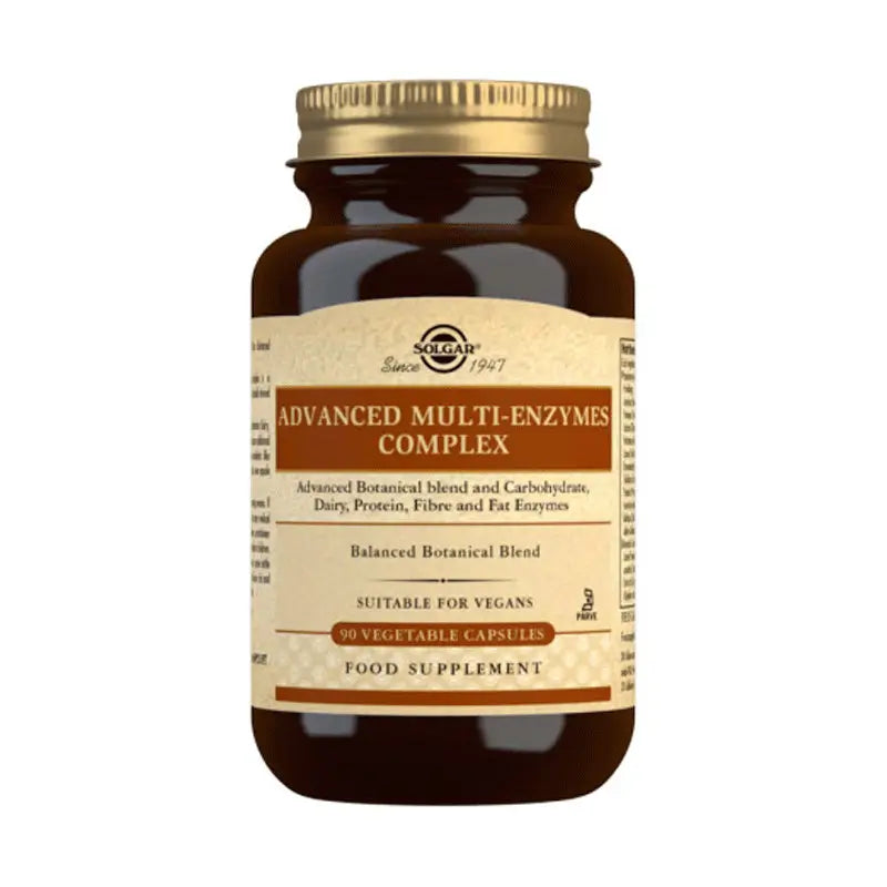 Mezcla patentada de enzimas (Contiene leche, trigo y soja) (que aporta Amilasa (Carbohidratos), Proteasa (Proteínas), Lactasa (Lácteos), Pectinasa/Fitasa (Carbohidratos), Lipasa (Grasas), bromelina (Proteínas), Celulasa (Fibras), Papaína (Proteínas), Invertasa (Carbohidratos), Maltasa (Carbohidratos), Alfa Galactosidasa (Carbohidratos), Mezcla equilibrada de plantas, Comino en polvo (Cuminum cyminum) (semilla), Manzanilla (Matricaria recutita) (flor), Anís en polvo (Pimpinella anisum) (semilla), Hinojo Extracto (4:1) (Foeniculum vulgare) (semilla), Jengibre Extracto (4:1) (Zingiber officinale) (raíz). Antiaglomerantes: estearato magnésico vegetal, dióxido de silicio; Agentes de carga: celulosa microcristalina, maltodextrina; Cápsula vegetal: hidroxipropilmetilcelulosa.