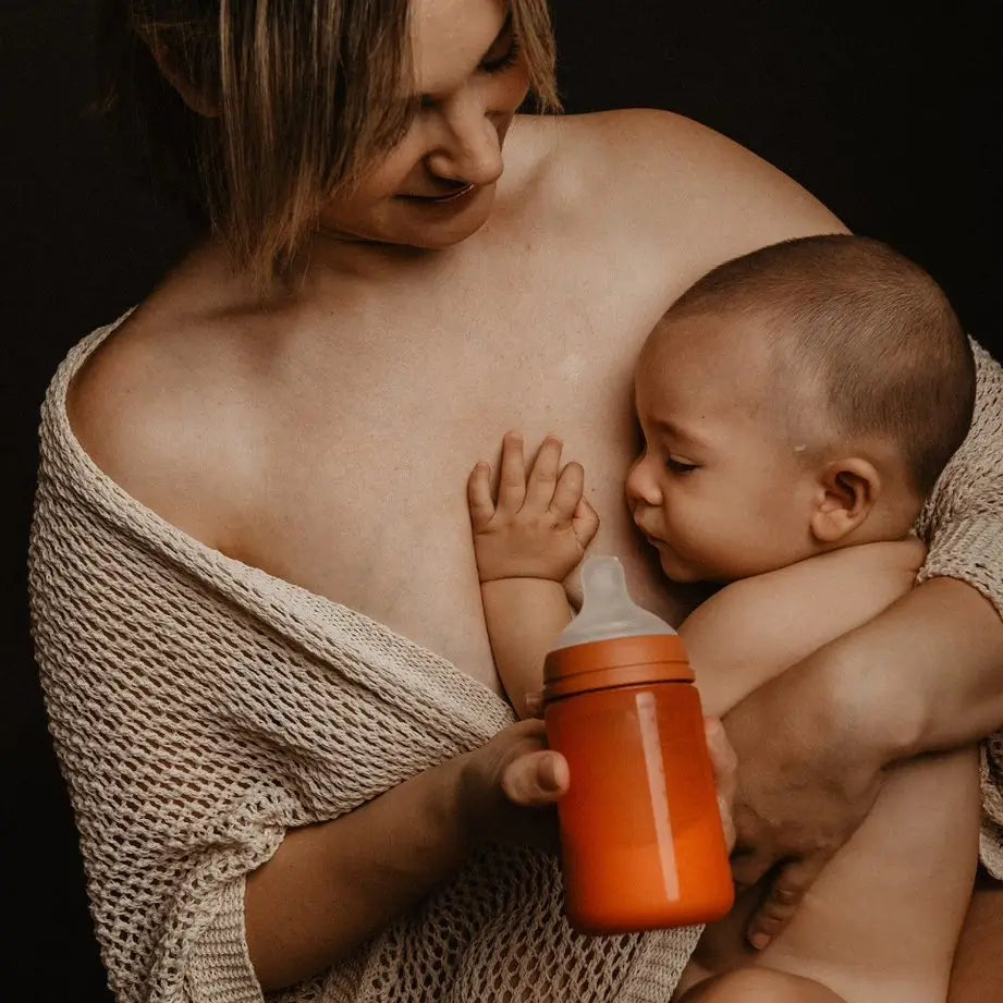 Biberón de 240 ml con nueva botella de silicona, blandita y suave. Biberón con botella enteramente de Silicona.Nueva botella suave y flexible de silicona con un tacto suave y aterciopelado que brinda una experiencia sensorial única.
