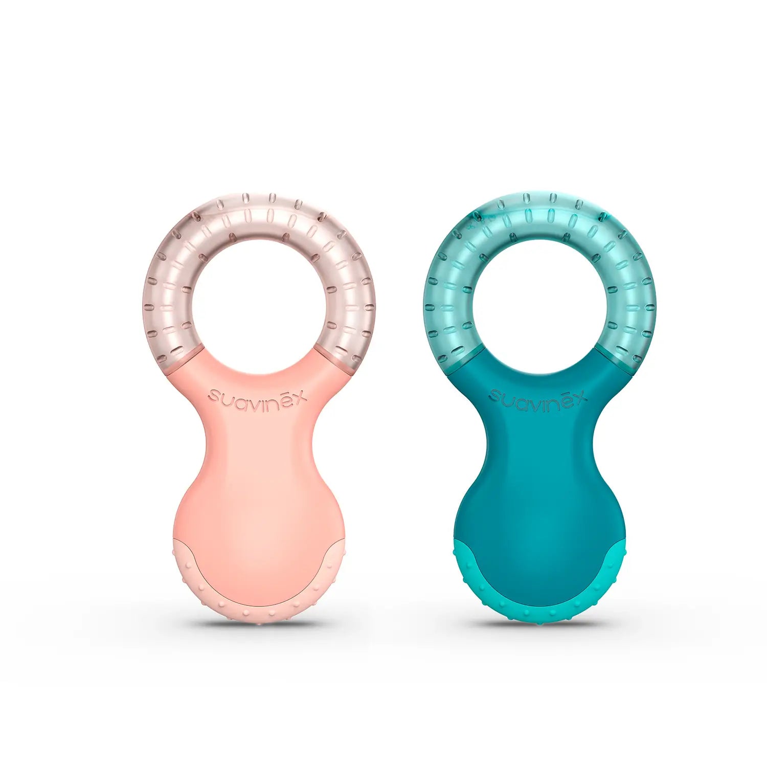 Mordedor refrigerante Suavinex de Etapa 2, ideal para bebés 4 meses. Este mordedor combina una parte dura y otra blanda con agua destilada en su interior que, enfriándola previamente en el frigorífico, ayudará a aliviar las encías inflamadas. Además, los distintos relieves, estimularán el fortalecimiento de los nuevos dientes premolares. su diseño ligero y totalmente ergonómico se adapta a sus manitas, ayudando a potenciar su motricidad. Antes de usar lavar con agua y jabón. Enfriar sólo en frigorífico. Esterilizable en frío. No hervir ni introducir en el microondas. No lavar en el lavavajillas.